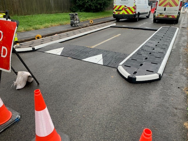 Leicester City Council wanted a swift solution and chose to install our rubber surface mounted products to combat speeding drivers on this road. A 75mm high Combination Table was installed by Rediweld and featured our 1 metre wide RediPave Traffic Island modules to form the sides of the table. Leicester City Council provided the Tarmac infill.
