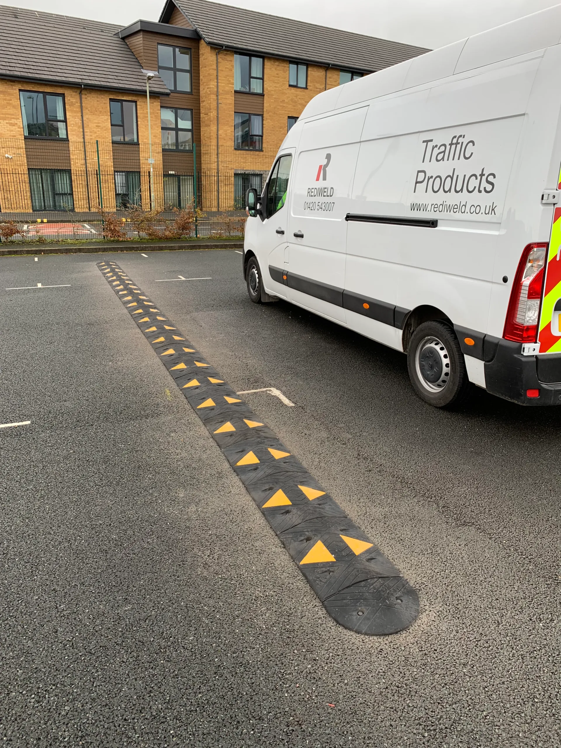 Rediweld’s Mini Sitecop is a compact, lower-profile speed ramp designed specifically for car parks, private roads, and commercial sites where full-severity speed humps are not required.