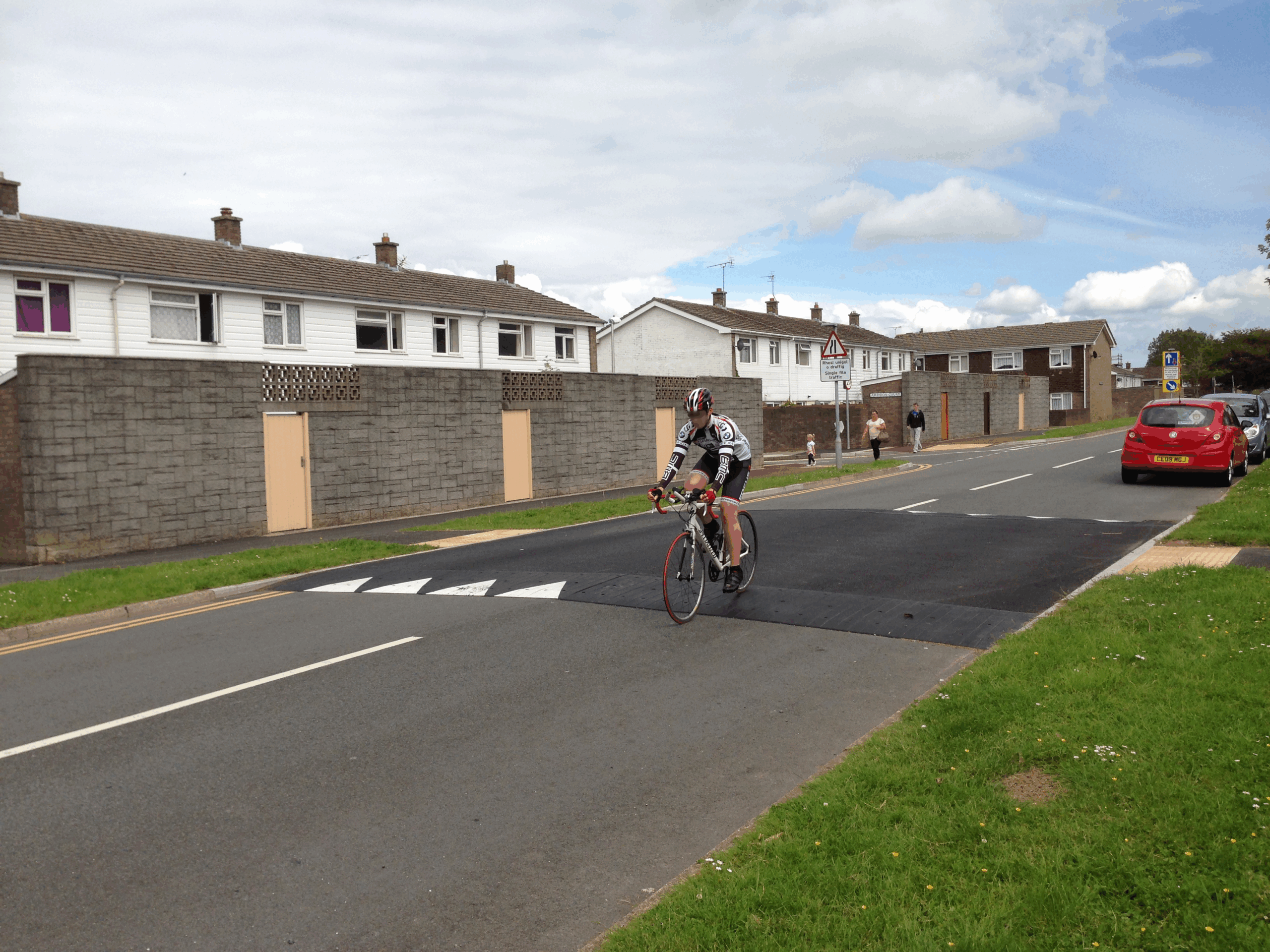 Tapered sides are when a raised table is installed across the road but has a gap to allow for drainage. A kerb to kerb option goes across the complete width of the road.