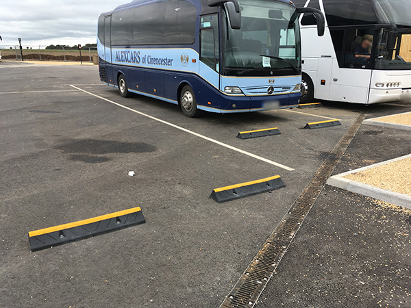 A mid-profile wheel stop engineered to suit coaches, minibuses, vans, and light goods vehicles, providing a clear stopping point without excessive vehicle stress.